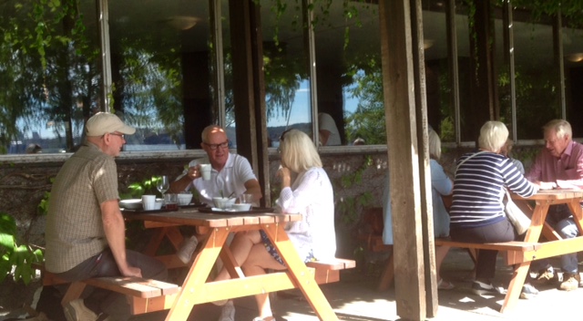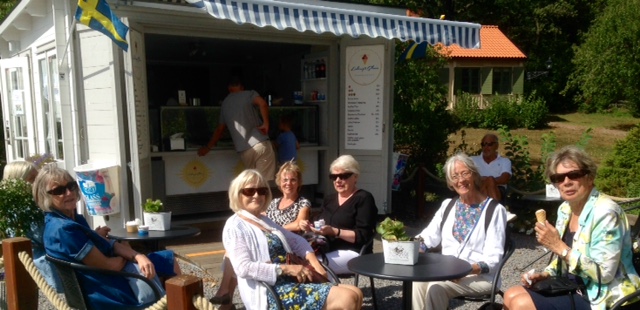 Måndagen den 6 aug. åkte någa av oss Aktiva med SL:s linje 80 ”Sjövägen” till Gåshaga på Lidingö, där vi åt lunch på restaurang Villan. I väntan på att åka tillbaka med båten njöt vi av en glass i solskenet. Det blev en skön eftermiddag med god mat och trevligt sällskap!