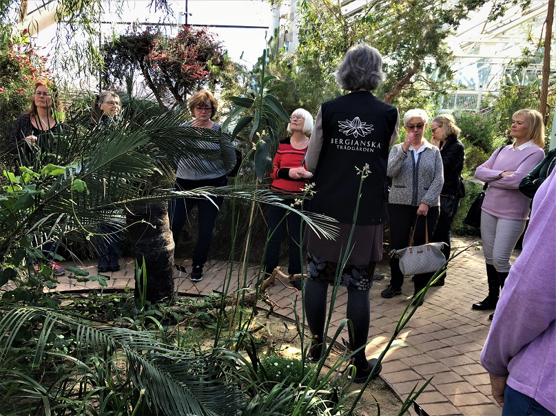 I Edvard Anderssons Växthus fick vi, 17 stycken aktiva, en suverän guidning av Karin Martinsson. Bland prunkande växter i medelhavsklimat njöt vi av blommornas vårdoft, bland aloer, olivträd och ökenväxter från Europa, Australien, Sydamerika och Kalifornien.