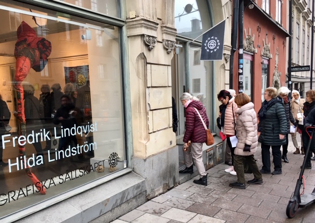 Många slöt upp för att gå med på Diverts konstrunda, så många att vi delade upp oss i två grupper, vilket blev väldigt lyckat. Vi såg olika konstformer och flera gallerister hade vernissage och bjöd både på presentation och tilltugg med ett litet glas dricka till. Några avslutade gemensamt på cafè.