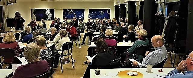 Vårens och årets första möte för aktiva seniorer i Stockholm öppnades med ett välkomnande av styrelsen till gamla och nya medlemmar. Inför en fullsatt aula berättade aktivitetsansvariga om sina kommande aktiviteter. Frågor och synpunkter från medlemmarna besvarades och det kom nya idéer och förslag. Föreningen växer och tacksamt kom det även några intresseanmälningar till arbetsgrupperna!