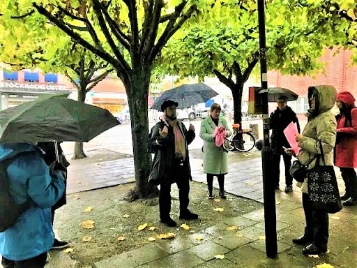 Modiga aktiva trotsade regn och blåst för en intressant och lärorik tur runt Tekniska högskolan.