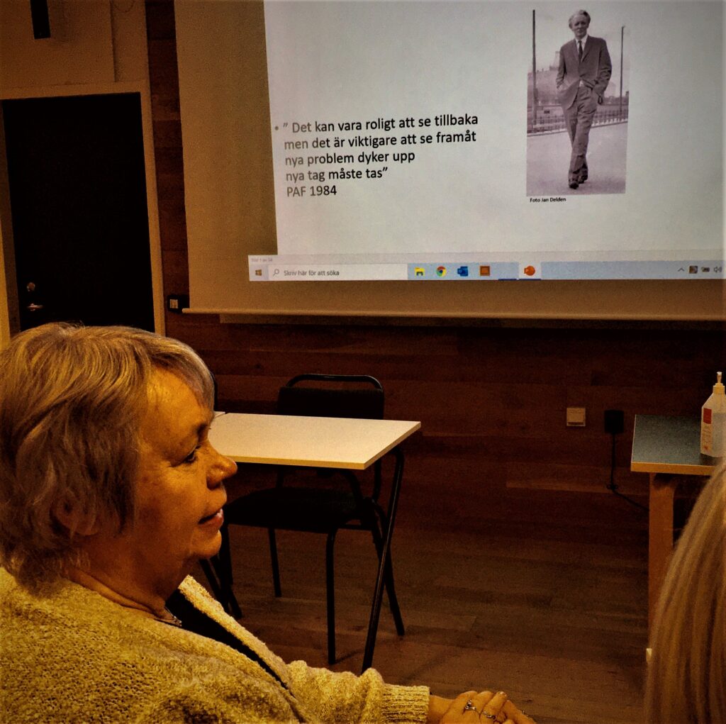 P O Fogelström-kännaren Kent Josefsson /Fogelströmsällskapet/ berättade lärorikt om Per Anders Fogelströms uppväxt, ungdomsverksamhet, liv och författarskap.