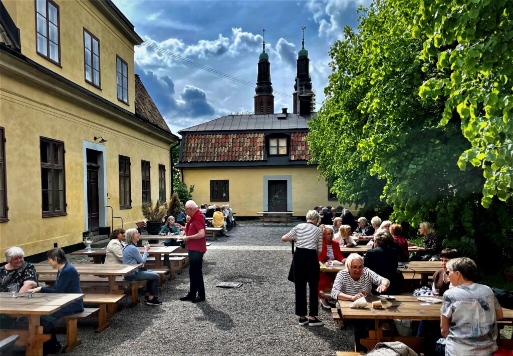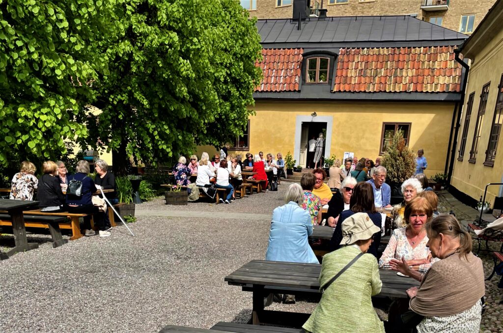 Kastanjeträden stod i blom , syrenerna doftade och pilfinkarna lovsjöng våren när aktiva seniorer gjorde sitt intåg på Kristinehovs Malmgård, detta paradis på Söder.