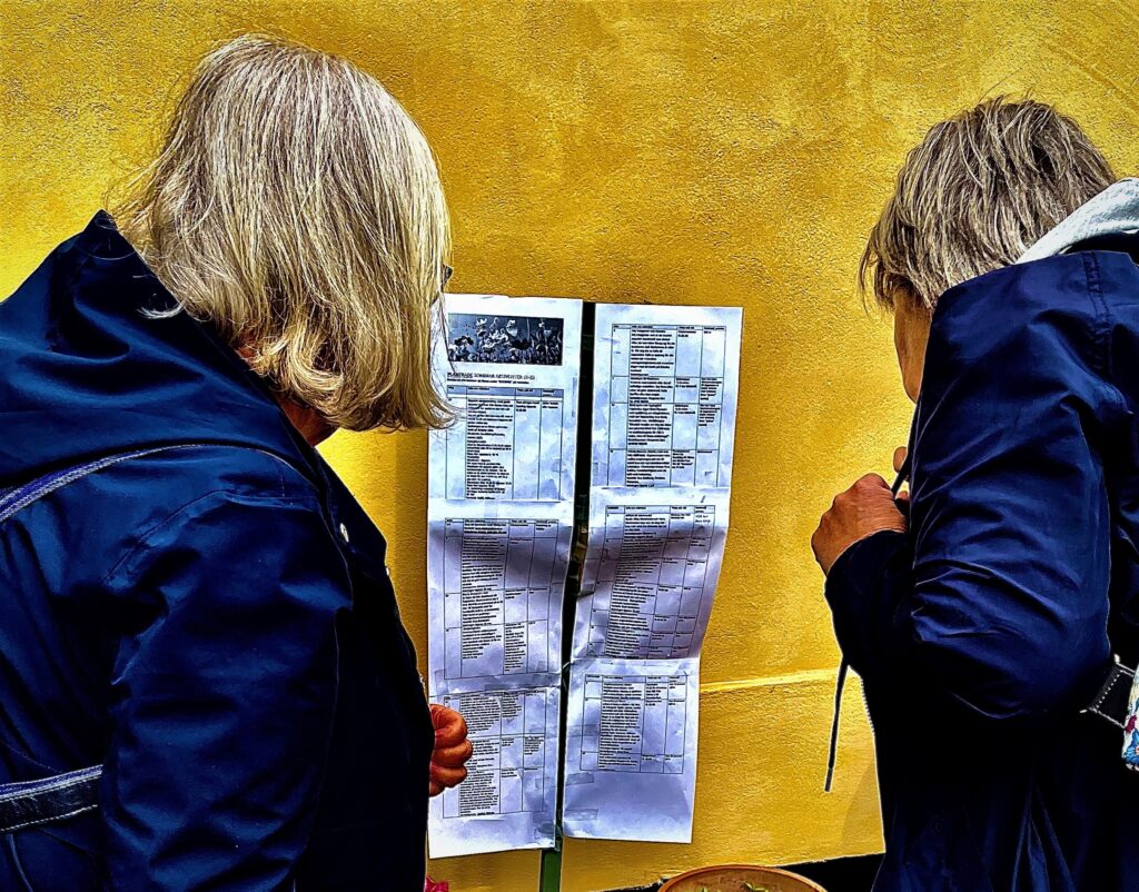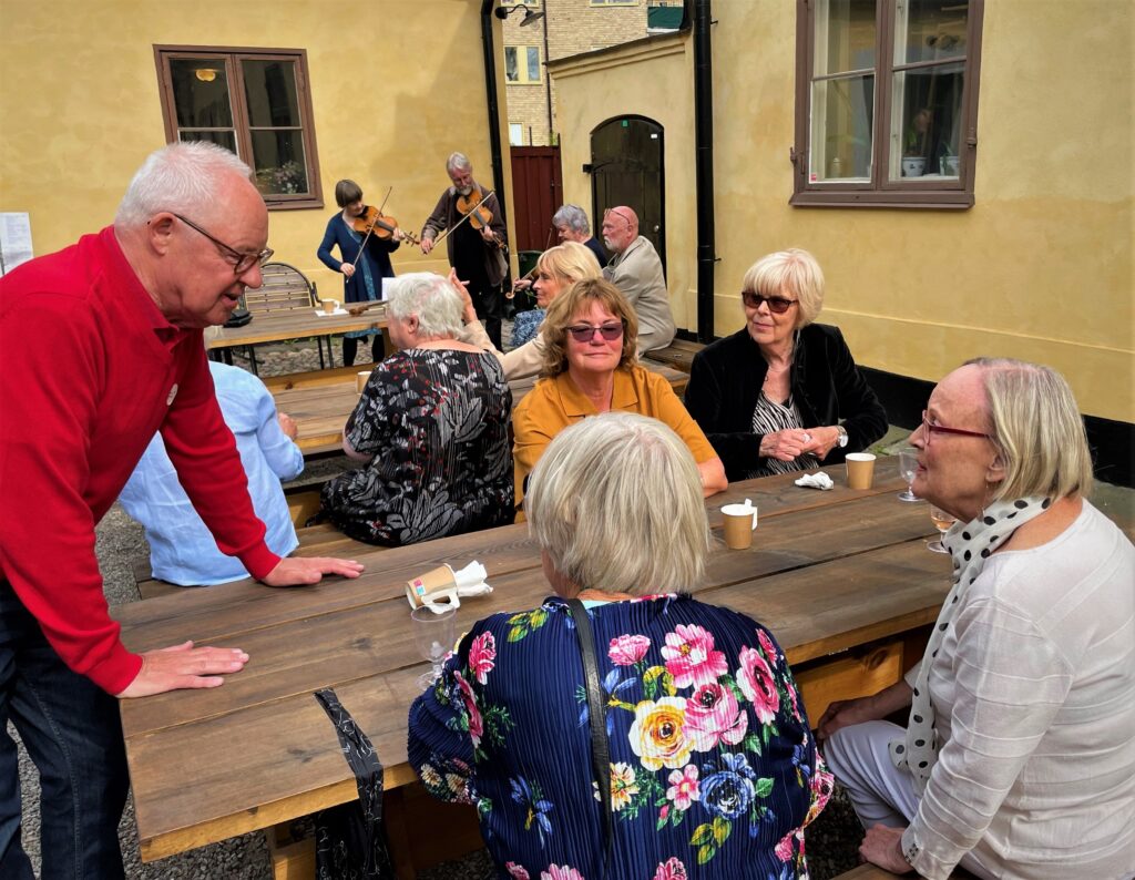 Kaffe och punchrulle och mera vin erbjöds allt medan samtalen pågick mellan bekanta och obekanta. Nya kontakter knöts. Någon hittade en med samma barndomsförflutet, någon hittade en framtida resekompis…
