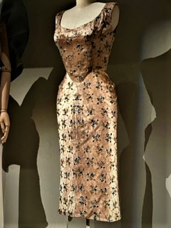 3:e plagget på 3:e bilden bars av skådespelaren Gaby Stenberg, svagt rosa klänning med ljusblå blommor, bars med ljusblå handskar och matchande ljusblå skor.