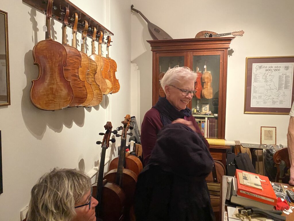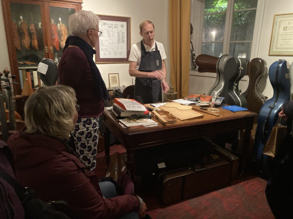 Genom Mårten Trorzigs gränd gick vi vidare upp till fiolmakaren. Det ska finnas cirka 15 st i Sverige. Han arbetade nästan uteslutande med renovering och reparationer som krävde en helt annan kunskap än fiolbyggande.