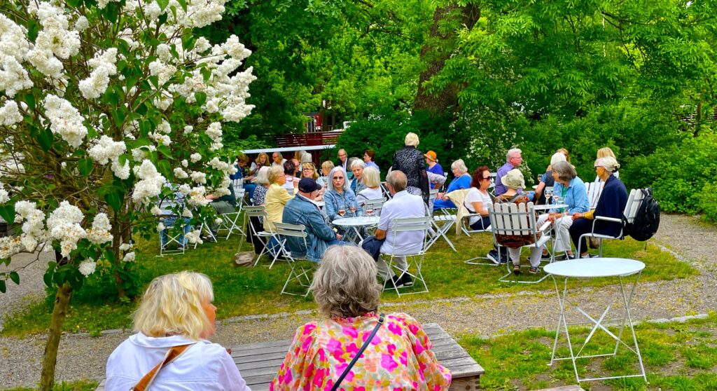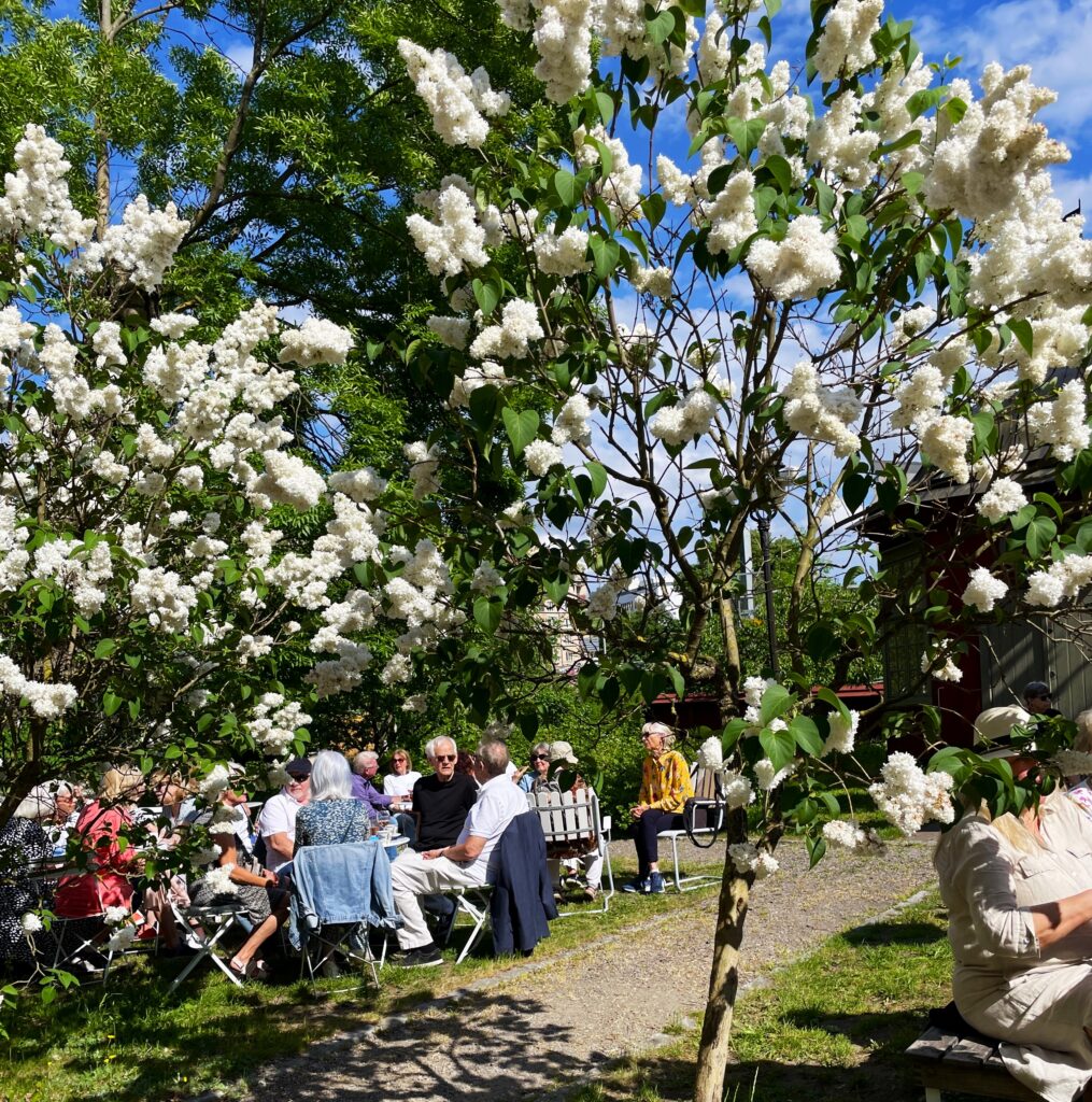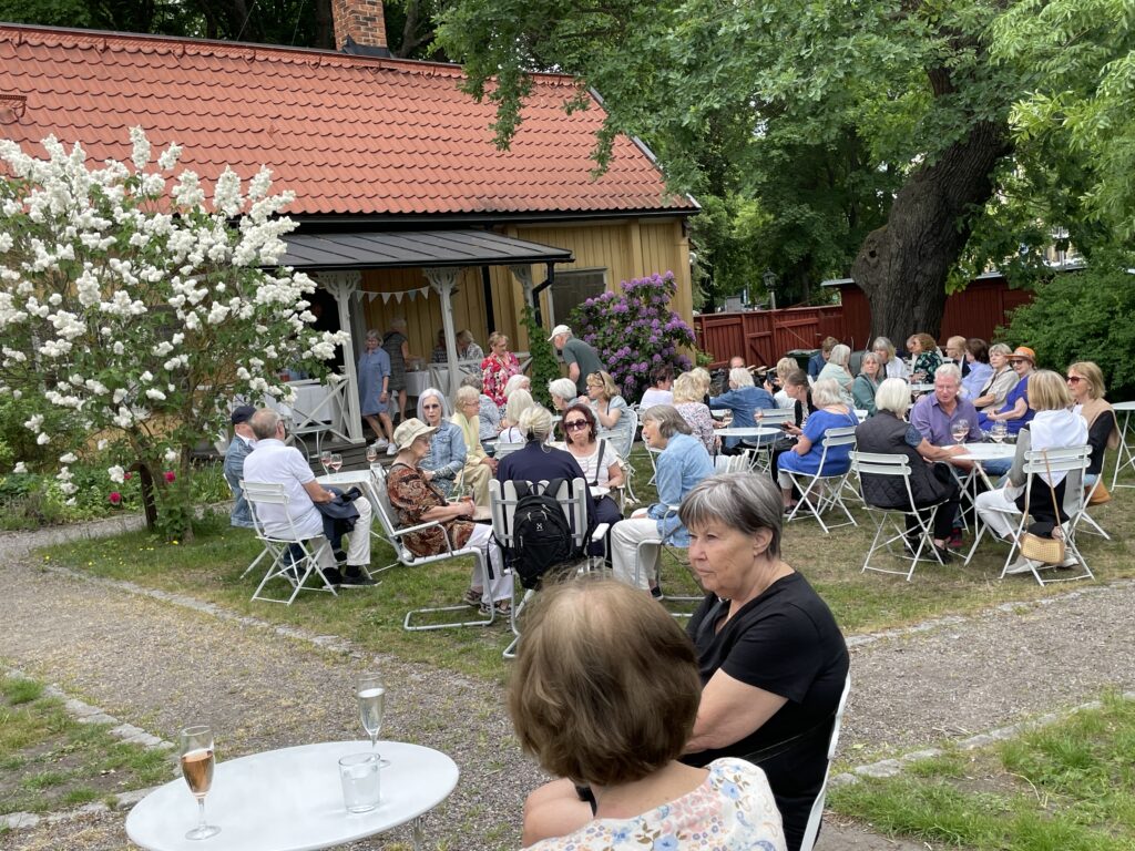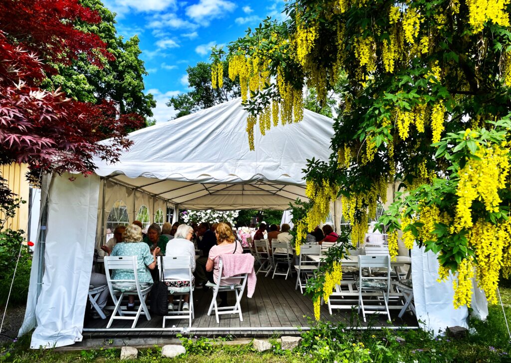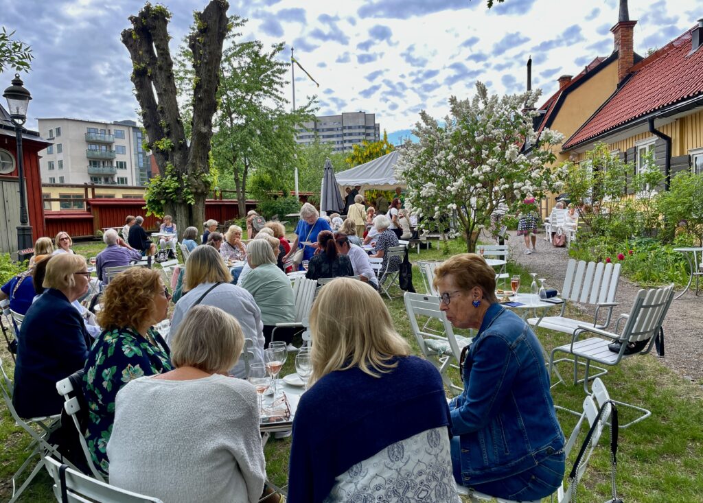 Så kom äntligen dagen för sommarfesten då 100 aktiva fick turen att träffas och umgås i en blomstrande fin trädgård på Ekermanska Malmgården.