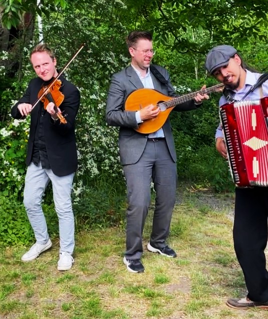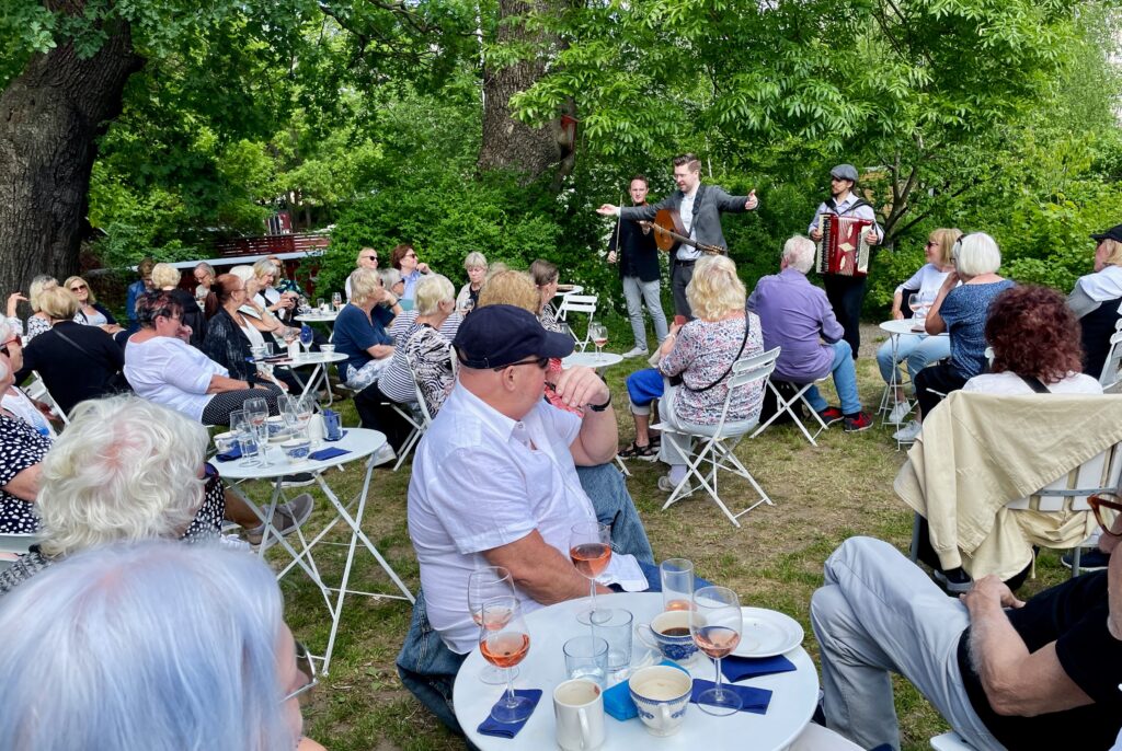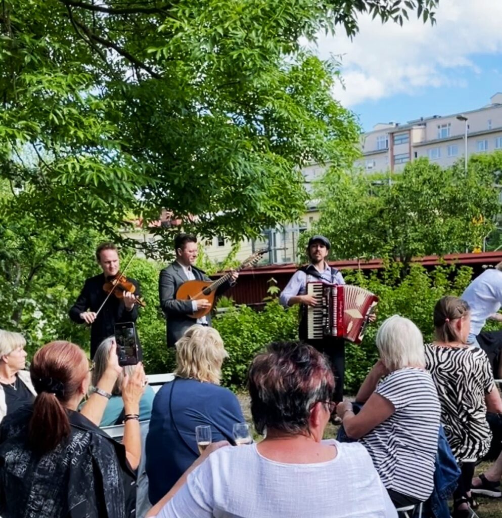 ”Grabbarna från Eken” spelade en glad härlig svensk och irländsk folkmusik och någon tog en svängom på gården.